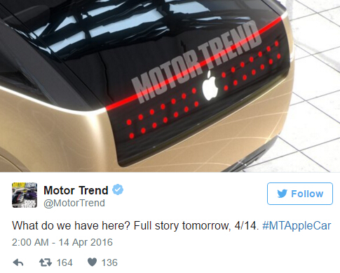 目前有4種推測: 1.蘋果公司有可能在近一年的時間內(nèi)設(shè)計出來智能汽車的外觀,Motor Trend雜志是咨詢加州帕薩迪納ArtCenter的設(shè)計師,由于蘋果公司也在這一區(qū)域,并且也是ArtCenter學院的客戶,所以有人推測這些概念圖有可能接近Apple Car的設(shè)計理念。 2.特斯拉的Model 3提前一年半發(fā)布和預售,量產(chǎn)并投遞預售用戶手中需要2-3年的時間,蘋果公司也可能采取類似的模式,這樣就需要在一年內(nèi)也要有Apple Car初步的設(shè)計宣布出來,搶奪所剩無幾的智能電動車用戶,所以很大概率蘋果公司會出頭具名回應。不外蘋果公司一直是吊著用戶預期的高手,也可能會再配合媒體炒作幾輪再宣布Apple Car的真面目。 3.間隔蘋果公司發(fā)布新一季的財報又不遠了,不同于圣誕假期的銷售旺季,蘋果公司本來就在財報預期2016第二財季iPhone的銷售會泛起多年來的第一次下滑,蘋果公司會面對華爾街的又一次看空,所以需要用Project Titan出來維持市場對于蘋果未來盈利能力的預期。 4.這些概念圖是Motor Trend雜志憑空的設(shè)想,就是為了宣傳雜志,吸引更多訂戶。