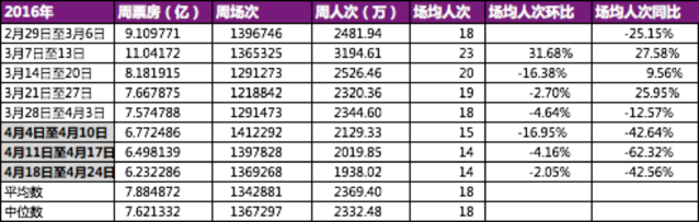 五一檔昨日(4月29日)拉開帷幕,在迎接新一輪的市場熱浪前,相信絕大部門行業(yè)觀察人士和片子興趣者都已經(jīng)留意到內(nèi)地影市在過去60天里所感慨感染到的刺骨寒意。 自三月中旬以來,內(nèi)地影市周票房已經(jīng)六連跌,由3月14日至3月20日的11.04億幾乎被腰斬到了4月18日至4月24日的6.23億。盡管在清明假期前(3月28日至4月3日),《蝙蝠俠大戰(zhàn)超人》和《我的特工爺爺》《火鍋英雄》的接踵上映給影院經(jīng)理們注入了一劑強(qiáng)心劑,止住了周場次的下滑趨勢,并在隨后顯著被影院經(jīng)理拉升到了141萬場(4月4日至4月10日),但觀眾反應(yīng)依然冷淡,周人次受清明三天假期影響,小幅晉升后旋即頭也不回地一路下探,與影院經(jīng)理們的夸姣愿望背道而馳。 對影院經(jīng)理們而言,令人寒心的數(shù)據(jù)遠(yuǎn)不止于此,自三月中旬后的六周時間里,不僅場均人次環(huán)比連續(xù)負(fù)增長,而且與去年同期比擬,4月4日后的連續(xù)三周,場均人次同比更是均以40%以上的速度下墜。