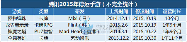不外,在2015年,騰訊發(fā)行的產(chǎn)品中,據(jù)不完全統(tǒng)計(jì)已泛起4款停運(yùn)游戲且集中在10月份。