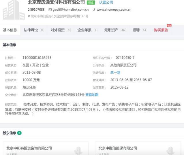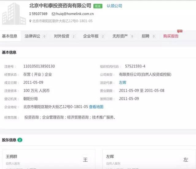 (相關工商資料信息來自企查查) 理房通注冊于2013年8月,法人為單一剛,身份是鏈家地產(chǎn)的執(zhí)行董事。理房通的股東為中融信擔保和北京中和泰投資咨詢有限公司兩家,而北京中和泰投資咨詢有限公司的股東除鏈家地產(chǎn)董事長左暉外,還有鏈家地產(chǎn)副總裁王擁群。