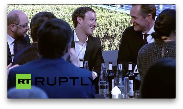 【圖說:施普林格官網(wǎng)及其旗下的眾多報紙,發(fā)布了良多照片造勢,但這樣“哥倆好”的畫面及會場全景只能辛勞地到俄國人發(fā)布的視頻中去截圖。RT威武。】 歐洲反谷歌旗手、阿克塞爾·施普林格團體CEO馬塞亞斯·多夫納(上圖為小扎頒獎者)在頒獎儀式上給了扎克伯格高度的評價,這樣的評價大家早就耳熟能詳了,值得引述的只有這一句,“Facebook 作為一個成功的分發(fā)平臺,是媒體的公平(fair)伙伴”。這句話,可能半真半假,似是而非,良多媒體人與媒體機構(gòu)是并不認同的。多夫納心里,可能也并不完全是這樣想的,只是,與谷歌比擬,他們還沒有反目。 扎克伯格在儀式上,也只撿大家愛聽的講。好比,他在獲獎感言中揄揚自己換尿布的技術如何高明,花20秒就可以搞定。他也不忘了談一下他的標牌性T恤。這些輕松的話題,讓他與一房子的老歐洲精英們一起會心地微笑。那些嚴厲的具有爭議的重大方向性話題,以及門外零星的抗議者,換個場合再議吧。 為了表示對于頒獎者的尊重,小扎換了身西服,但是,為了表示他不向金科玉律屈服,他仍舊率性地不戴領帶。