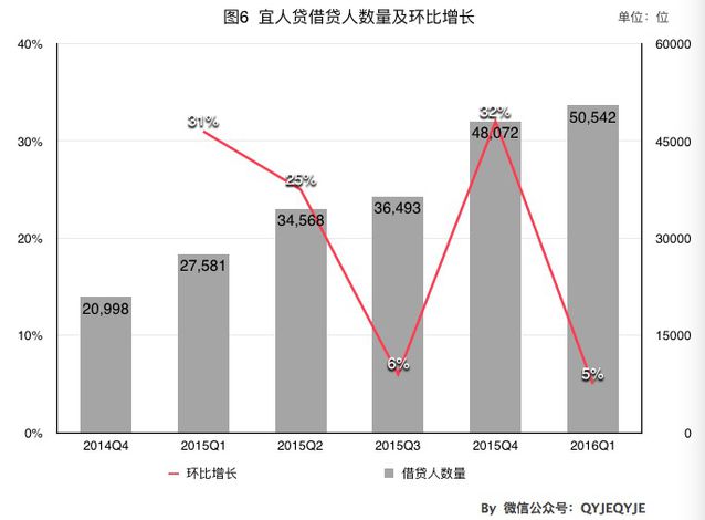 單借款人數(shù)變化情況,與看點(diǎn)一整體波動情況以及正常看點(diǎn)二波動情況相似。增速都是在2015Q3季度泛起相對低谷;跟著宜人貸上市,泛起短暫的反彈;而后跟著整體宏觀環(huán)境,達(dá)到歷史最低點(diǎn)。 當(dāng)然,整體絕對值情況,仍舊是繼承不亂發(fā)展。