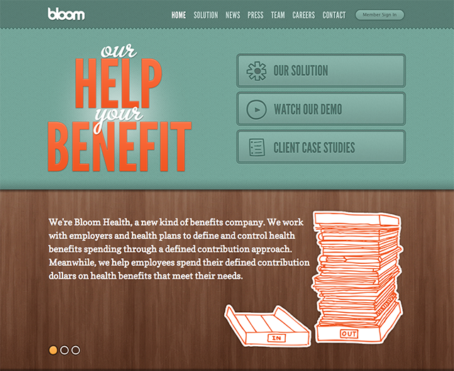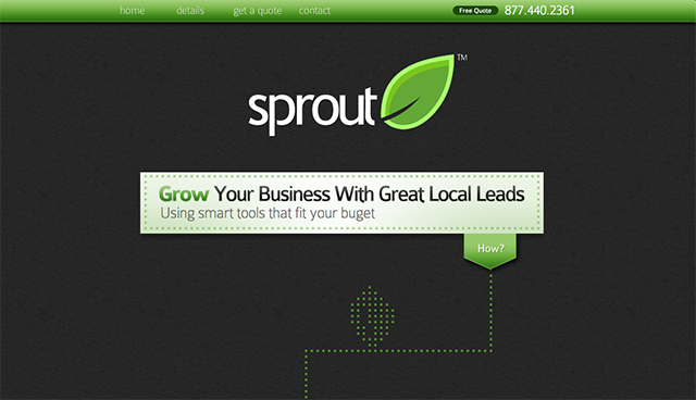 2.Sprout的網(wǎng)站沒(méi)有沒(méi)使用大片的綠色,只是在灰度較高的背景上加了一些綠色的裝飾來(lái)做點(diǎn)綴。但這些元素并不只是美觀而已,同時(shí)也在無(wú)形中指引著我們,反差顯著的綠色和黑灰色讓用戶能輕而易舉的分辨出信息重點(diǎn)。