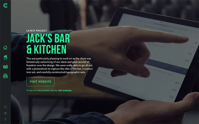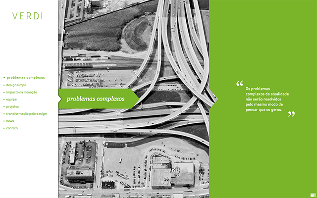 6.VERDI的網(wǎng)站頁(yè)面運(yùn)用了色塊“拼接”的效果,從白到灰再到綠色。白色和灰色都是中性色,所以頁(yè)面中的綠色很天然的成了最搶眼的一部門(mén),這樣的搭配方式也讓畫(huà)面更富有運(yùn)動(dòng)感。