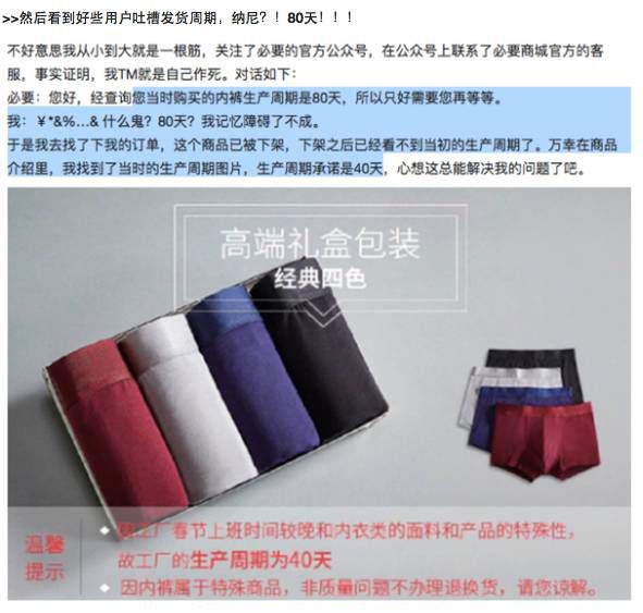 所謂:看起來(lái)很美的C2M,實(shí)質(zhì)在中國(guó)寸步難行 大廠有過(guò)往包袱不愿意陪著玩 小廠有意愿但又沒(méi)有實(shí)力玩 貨差人就少,訂單量小 工廠不愿意開(kāi)出產(chǎn)線(xiàn)就積存訂單 良多產(chǎn)品逾期不能發(fā)貨 知乎用戶(hù)上必要買(mǎi)一條內(nèi)褲,出產(chǎn)周期是:80天 如斯體驗(yàn),如何能不挨罵?如何能有回頭客?