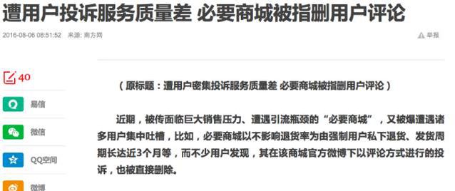 但你的必要商城,并沒(méi)有像你稿子中說(shuō)的那么好啊! 不是宣稱(chēng)有百萬(wàn)用戶(hù)嗎?官微連10萬(wàn)粉絲都沒(méi)有 百度上連個(gè)大點(diǎn)的logo都找不到 這算哪門(mén)子的影響力平臺(tái)?