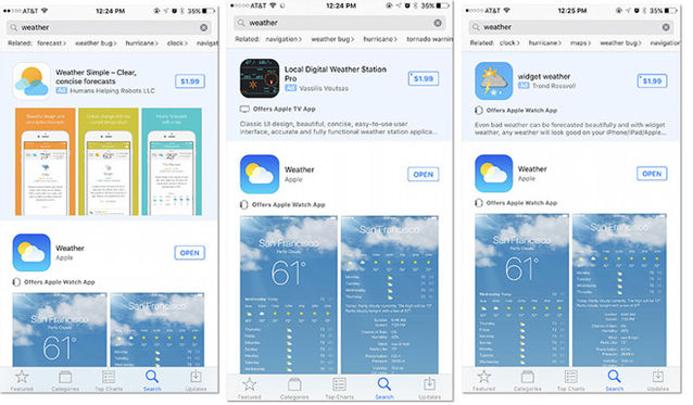 競爭對手和小型應(yīng)用可以購買樞紐詞 大家擔(dān)心導(dǎo)致不良后果 蘋果App Store內(nèi)的搜索廣告,使用藍色背景,以和其他正常搜索結(jié)果作區(qū)別,并且也標注AD,認識Google廣告的人會清楚知道這是廣告。不外仍是有人擔(dān)心,競價廣告的開放會導(dǎo)致App Store混亂現(xiàn)象的增多。 1.搜索樞紐詞被競爭對手購買。目前已經(jīng)泛起搜索一些樞紐詞,泛起競爭對手或者其他應(yīng)用的現(xiàn)象,例如搜索Yelp泛起Eats24,搜索weather泛起其他的小應(yīng)用