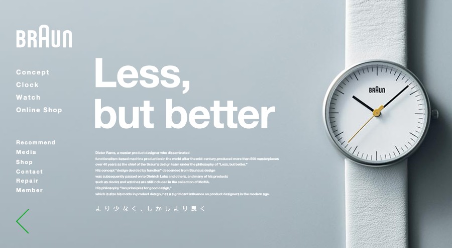 根據(jù)古騰堡圖表的閱讀邏輯來看,這一系列圖片首先從左上角看到的是該品牌的logo,再由閱讀軌跡從對(duì)角線視覺中的詞組到右下角的產(chǎn)品,畫面需要夸大的元素都在閱讀邏輯的規(guī)律下展現(xiàn)。其余的視覺盲點(diǎn)則是輔助性元素。 2.直線式邏輯 對(duì)于直線式邏輯,我的理解是自上而下猶如權(quán)力分配等級(jí)軌制。同工業(yè)鏈一樣,一環(huán)扣一環(huán),每個(gè)環(huán)節(jié)都是緊密相連前后有序,嚴(yán)謹(jǐn)公道。例如一個(gè)產(chǎn)品的頁面詳情如下: