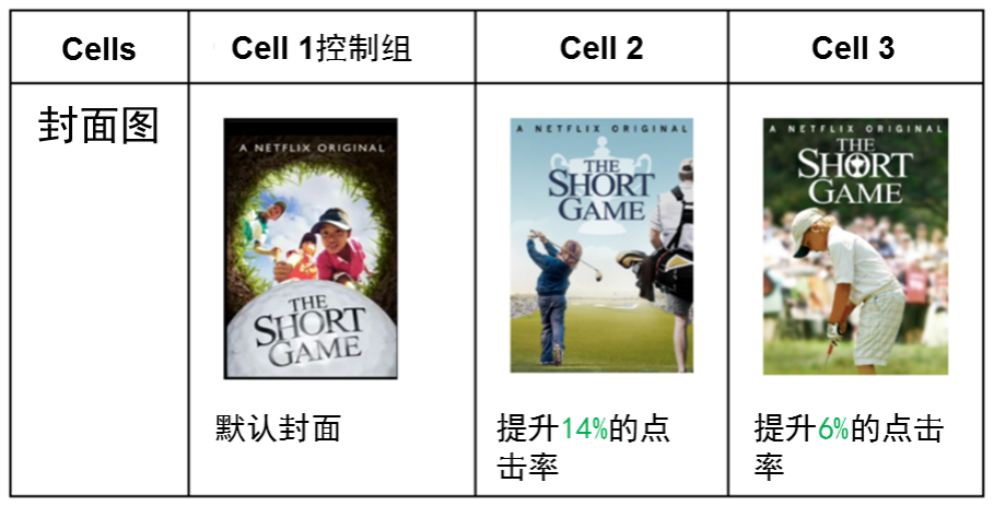 Netflix 隨后建立了一個封面圖自動分類系統(tǒng),將共用一張背景圖但具有不同長寬比、裁剪位置、小規(guī)模修整以及標題經(jīng)由局部處理的封面圖分為一組作為比較,并在網(wǎng)站上的不斷重復試驗,以追蹤具有相似特征的封面圖吸引點擊的效果。 下面是一些案例: 兩張標記封面圖效果明顯優(yōu)于其他實驗對象