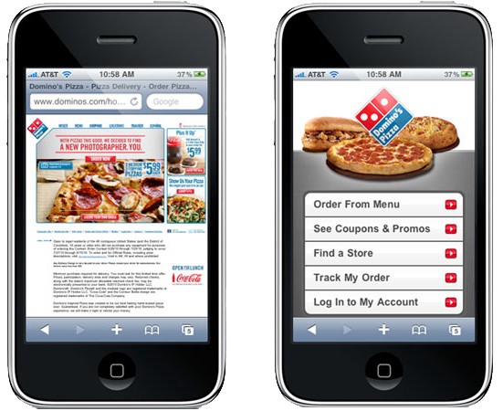 假如你但愿自己的網(wǎng)站能夠輕松的在移動(dòng)端設(shè)備上訪(fǎng)問(wèn),那么應(yīng)當(dāng)消除所有移動(dòng)端上可能存在的可用性的題目,下面有12條晉升移動(dòng)端網(wǎng)頁(yè)設(shè)計(jì)的建議,確保你的頁(yè)面能夠通過(guò) 可用性測(cè)試,并提供良好的用戶(hù)體驗(yàn)。 1、針對(duì)移動(dòng)端進(jìn)行全面優(yōu)化 桌面端網(wǎng)頁(yè)在移動(dòng)端設(shè)備上首要的障礙就是導(dǎo)航的使用。看看下面Domino批薩的案例,它的桌面端和移動(dòng)端網(wǎng)頁(yè)的對(duì)比就相稱(chēng)顯著,移動(dòng)端頁(yè)面經(jīng)由優(yōu)化之后的體驗(yàn)就完全不同。簡(jiǎn)樸說(shuō)來(lái),優(yōu)化后的移動(dòng)端頁(yè)面更加干凈,有著更輕易導(dǎo)航的CTA按鈕