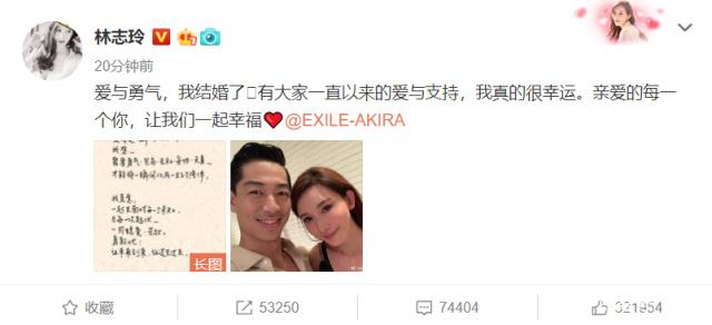 宅男心中的女生志玲姐姐宣告成婚了。“愛(ài)與勇氣,我成婚了。有我們一直以來(lái)的愛(ài)與支持,我真的很走運(yùn)。親愛(ài)的每一個(gè)你,讓我們一同美好!