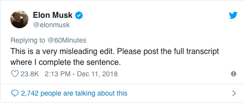 北京時(shí)間12月11日下午音訊,特斯拉的首席執(zhí)行官埃隆·馬斯克(Elon Musk)在承受哥倫比亞廣播公司(CBS)《60分鐘》節(jié)目采訪時(shí),表明自己無(wú)意于再次擔(dān)任這家汽車制造商的主席一職。