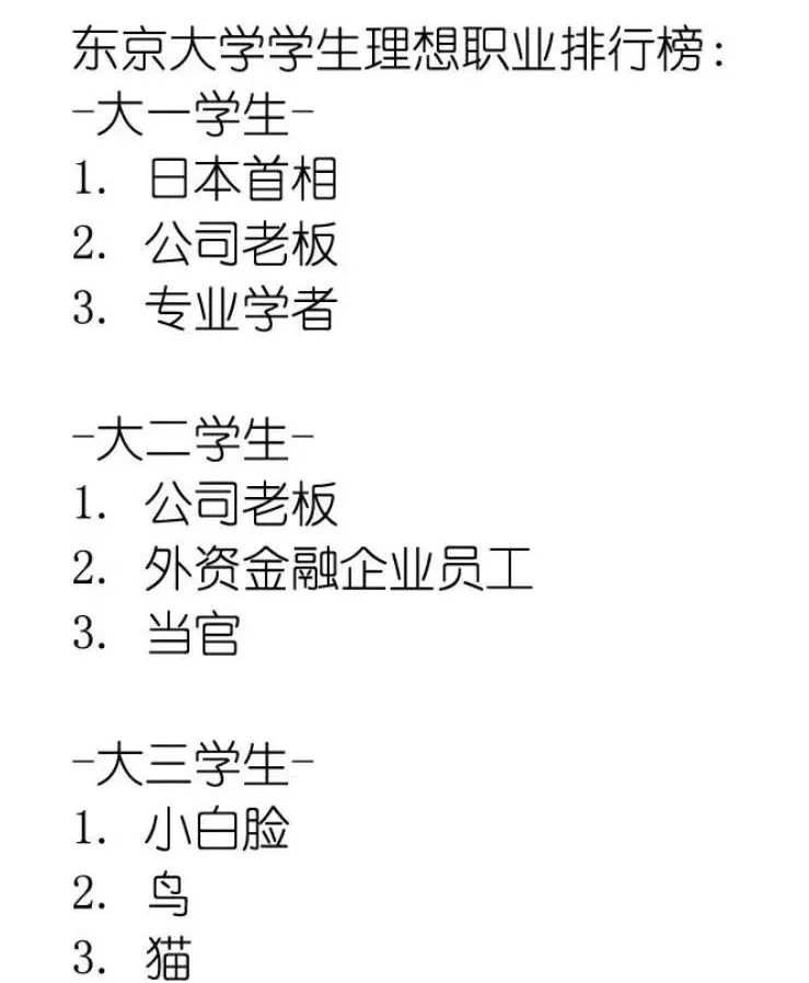 昨日推特上這張圖火了 東京大學(xué)學(xué)生抱負工作排行榜 不同年級的同學(xué)差別很大呢