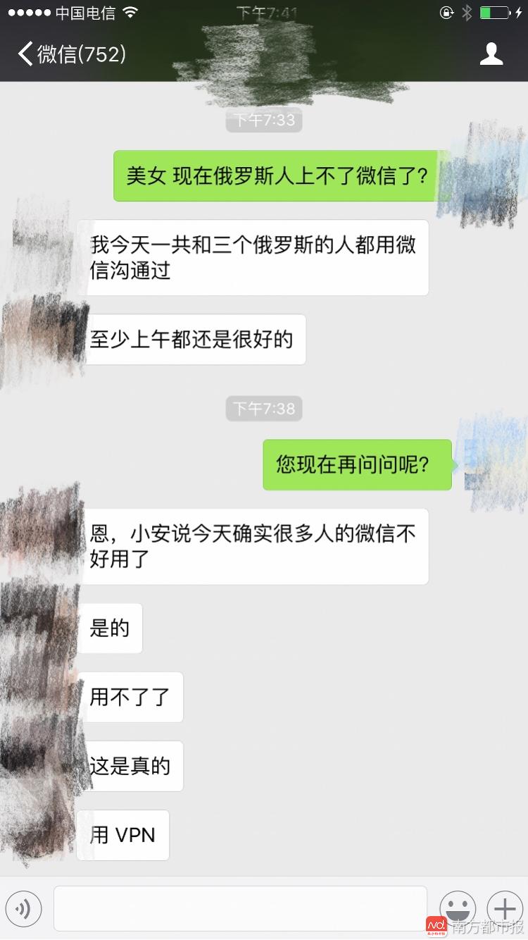 在剛剛,南都記者多方承認(rèn),微信在俄羅斯境內(nèi)被封殺。有多名居住在俄羅斯的人士向南都記者表明,從今天下午開端,俄羅斯境內(nèi)不少微信用