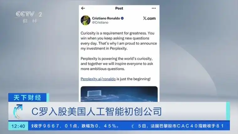 12月6日音訊,據(jù)外電報導(dǎo),億萬富翁足球運動員克里斯蒂亞諾·羅納爾多迄今為止有目共睹的出資是入股了Perplexity AI Inc.,這是一家快速開展的舊金山人工智能(AI)草創(chuàng)公司,