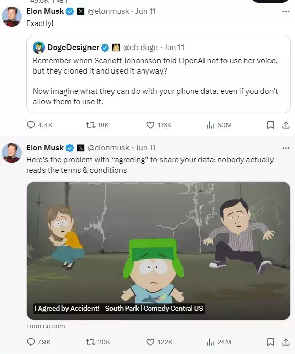 在批判OpenAI這件事上,馬斯克總是沖在第一線,孜孜矻矻營業(yè),不遺余力地揭示OpenAI在迷失本心、AGI安全治理、信息泄露等方面的諸多問題。馬斯克與蘋果之間的糾葛似乎由來已久。