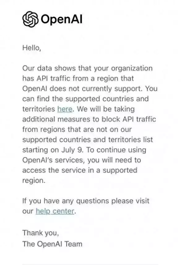 據(jù)DoNews6月25日消息,OpenAI宣布,為了維護服務(wù)質(zhì)量和安全性,將采取額外措施來限制來自當前不支持的國家和地區(qū)的API流量。官方推送的郵件通知中明確指出,