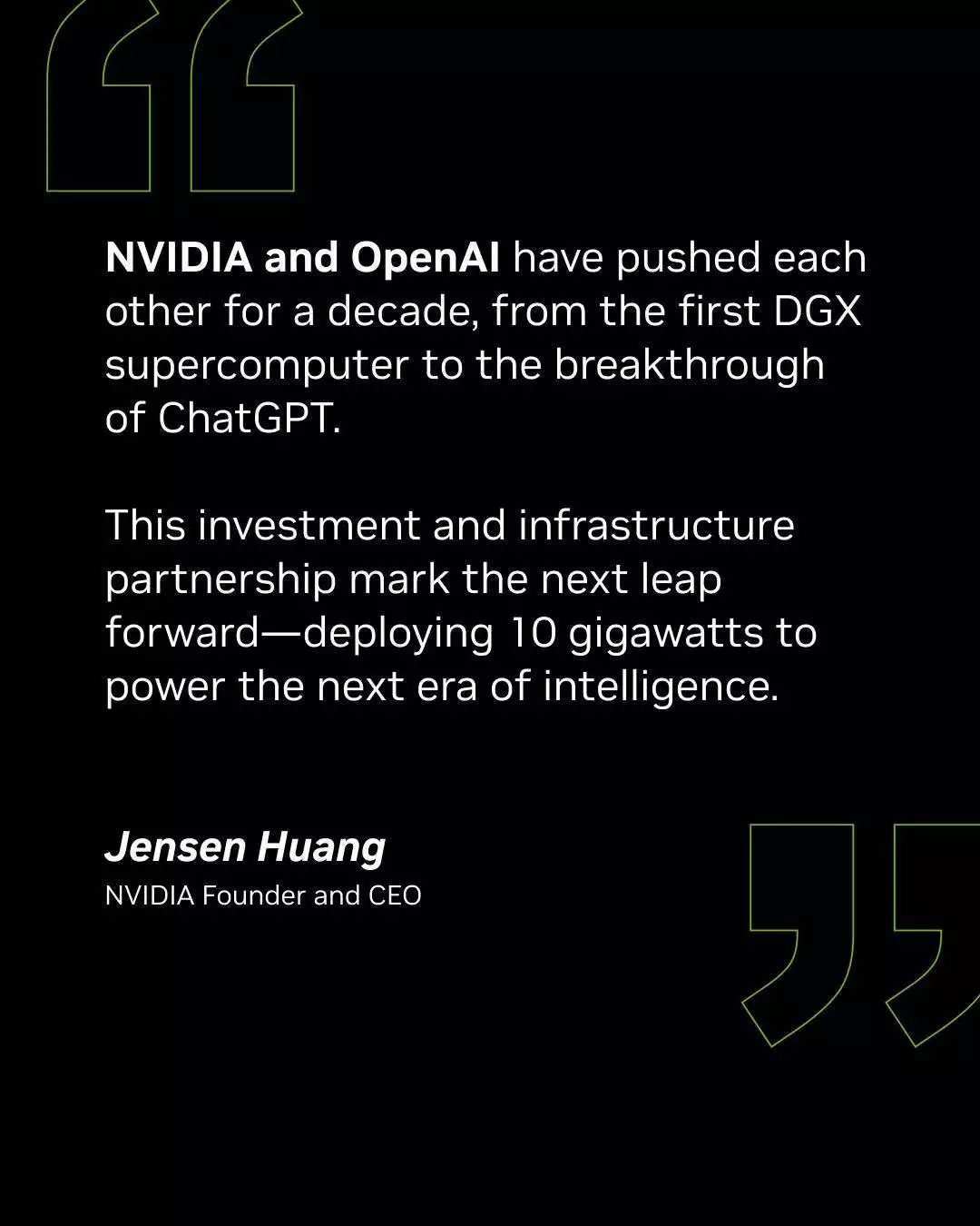 英偉達(dá)計(jì)劃向OpenAI投資高達(dá)1000億美元,共同建設(shè)規(guī)模空前的AI數(shù)據(jù)中心。9 月 23 日音訊,英偉達(dá)和 OpenAI 今天發(fā)布聲明,宣布將展開(kāi)一項(xiàng)具有里程碑含義的戰(zhàn)略協(xié)作伙伴關(guān)系。