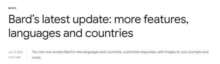7月14日訊,美東時刻周四,谷歌對其人工智能(AI)談天機器人Bard進行了版本更新。谷歌宣告,將向歐盟和巴西的更多用戶敞開Bard服務(wù),