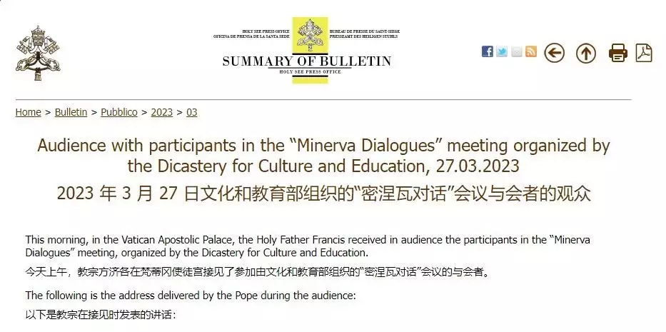 3 月 28 日音訊,教皇方濟(jì)各(Pope Francis)在一年一度的 Minerva Dialogues 活動(dòng)中,贊揚(yáng)了 ChatGPT 等生成式人工智能
