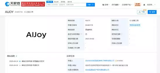5月12日,天眼查財(cái)產(chǎn)線索信息顯示,近日,北京京東叁佰陸拾度電子商務(wù)有限公司申請(qǐng)注冊(cè)多枚“AIJoy”商標(biāo),國(guó)際分類為科學(xué)儀器、運(yùn)輸工具、通訊服務(wù)等,