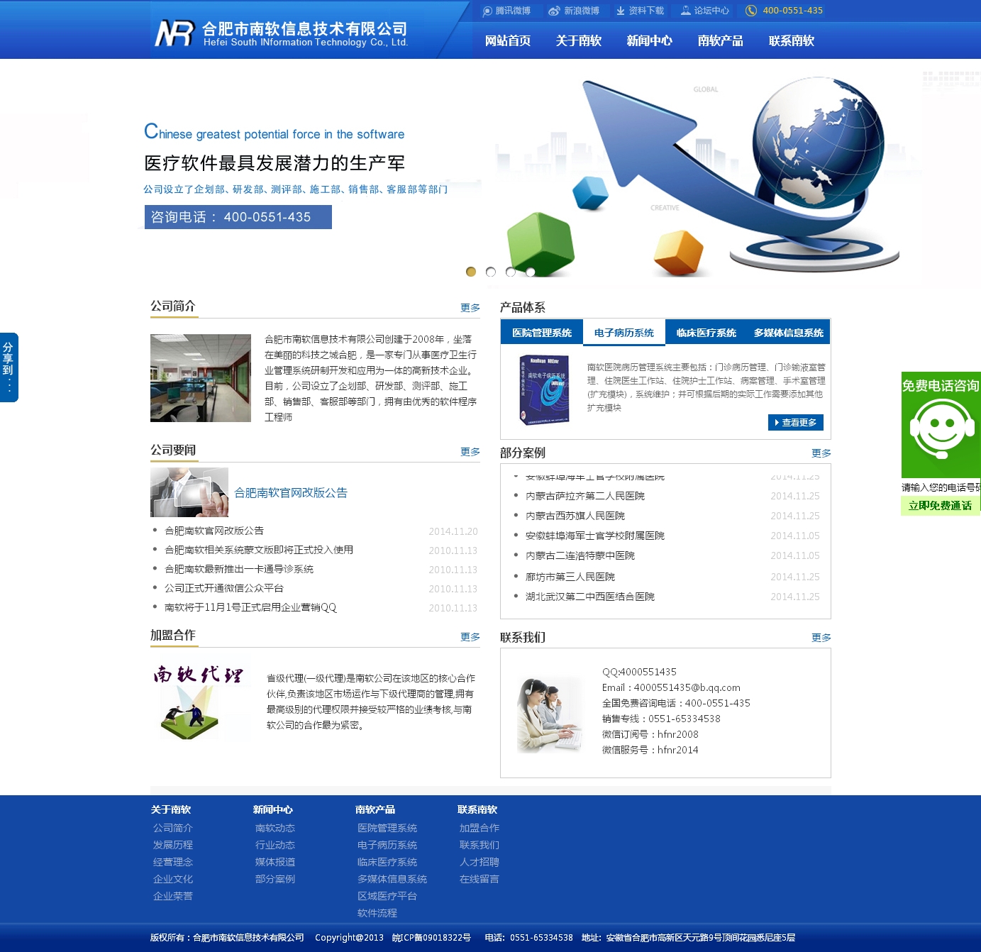 合肥市南軟信息技術(shù)有限公司創(chuàng)建于2008年,坐落在美麗的科技之城合肥,是一家專門從事醫(yī)療衛(wèi)生行業(yè)管理系統(tǒng)研制開發(fā)和應(yīng)用為一體的高新技術(shù)企業(yè)。